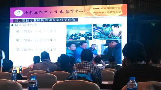 2014年11月27日至28日,由北京发那科有限公司主办,石家庄市职教中心承办的“FANUC数控系统应用中心”年会在河北省石家庄市召开。来自全国四十多所国家示范院校应用中心、数控系统企业、机床生产企业等一百多位代表参加了会议。数控设备应用与维护教研室主任梁盈富、FANUC数控系统应用中心教师司昌练参加了年会。