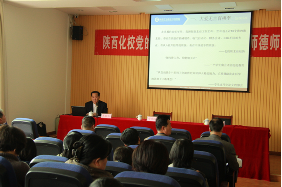 数控学院省级教学名师吴勤保教授,应陕西省石油化工学校邀请,于2014年4月2日下午,在该校礼堂作了一场师德师风建设报告,报告会由该校党委副书记张林通主持,校党委书记党纪茂、校领导肖广良、李应松及该校在职党员、中级职称以上教职员工、全体中干等参加了报告会。