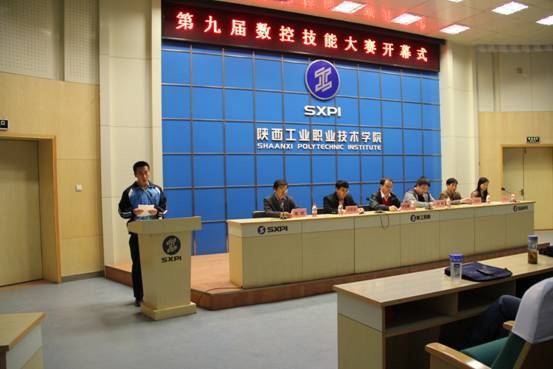 在庄严的国歌声中第九届数控技能大赛拉开了帷幕,数控工程学院院长卢文澈致大赛开幕词,他说,近年来,数控学院积极组织教师和学生参加省级和全国技能大赛,并多次获奖,在西北地区高职院校中名列前茅。他希望各参赛选手珍惜机会,认真参赛,充分展现自己的才华和风采,通过选拔及后序的刻苦训练,在省赛上创佳绩,在国赛上有突破。副院长刘军旭介绍了竞赛安排情况。参赛选手机电1206班朱浩清同学代表参赛选手作了发言并庄严宣誓。