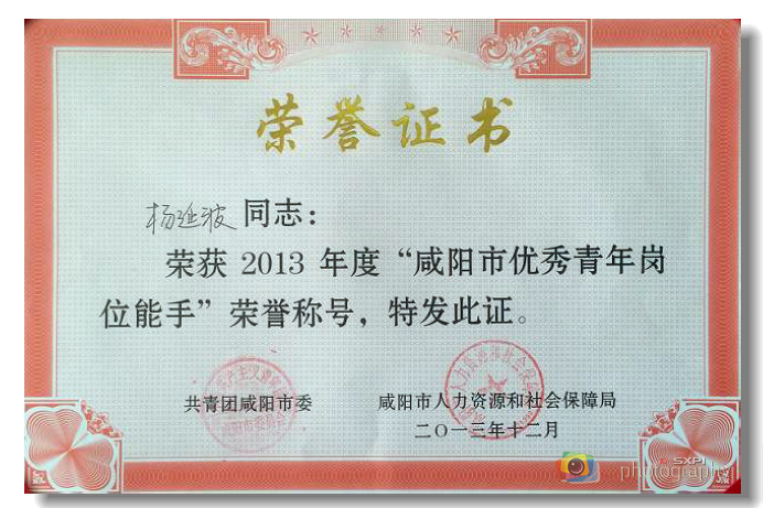 近日,共青团咸阳市委、咸阳市人力资源和社会保障局联合发文(团咸联发[2013]50号),对“2013年度咸阳市杰出青年岗位能手和优秀青年岗位能手”进行表彰。我院数控工程学院青年教师杨延波同志被评为“2013年度咸阳市优秀青年岗位能手”。