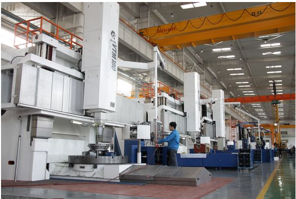 秦川集团重型联合厂房车间正在加工大型工件