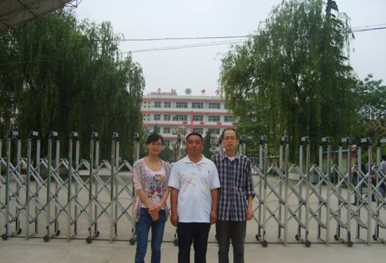 张润录、宋远社、白帅丽三位老师在千阳中心门前合影
