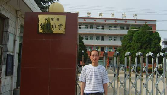 张润录、宋远社老师在陇县第二高级中学门前合影