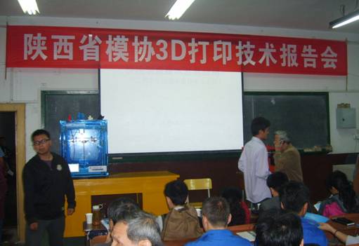 在这次会上,陕西恒通智能机器有限公司总工程师牛群做了“3D打印技术专题报告”,介绍了3D打印技术的发展历程、特点,3D立体打印原理与快速成型工艺,讲述了快速成型的分类(根据材料与加工设备的不同,技术上主要分以下六大类,即1.SLA工艺:光固化/立体光刻; 2.FDM工艺:熔融沉积成形; 3.SLS工艺:选择性激光烧结; 4.LOM工艺:分层实体制造;5.3DP工艺:三维印刷; 6.PCM工艺: 无木模铸造),并重点讲述了SLA工艺、FDM工艺和SLS工艺。
