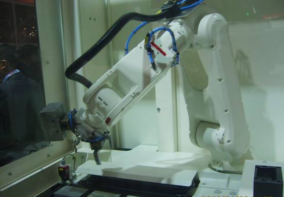 这次展览会上主流展品是五轴加工中心和车铣复合、车钻复合加工中心及大型数控车床、数控铣床等,尤其是国外参展商的车铣复合、车钻复合加工中心结构新颖,采用了多关节机械手,吸引了很多参观者。