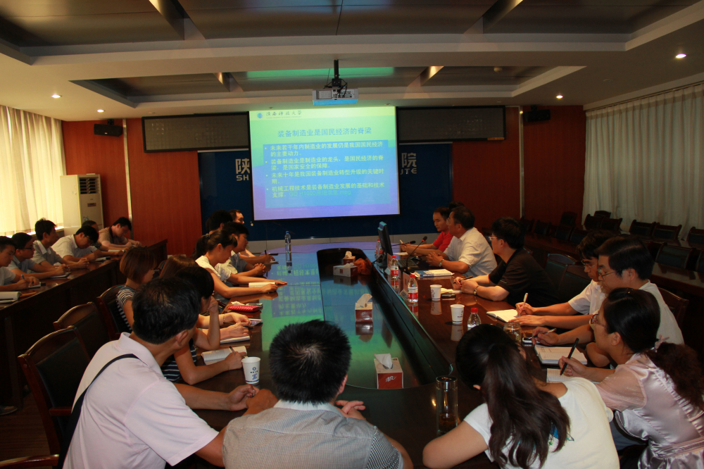 2012年7月31日下午,由继续教育中心和数控工程学院联合举办的陕西省2012年第一期(总第十一期)中职“双师型”教师培训班“数控技术应用”专业、“技术讲座在在崇文南楼第一会议室举行,特邀请陕西科技大学副校长、博士生导师曹巨江教授做了“中国机械制造发展战略与趋势”的讲座。继续教育中心主任韩伟、数控工程学院院长卢文澈、总支书记南欢、副院长刘军旭、数控工程技术训练中心主任王彦宏、培训班班主任杨勇及培训班全体学员等30多人聆听了讲座。