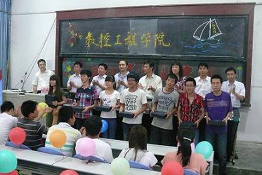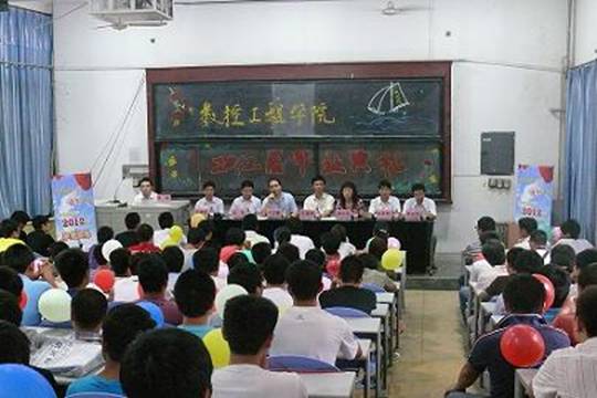 6月26日,数控工程学院隆重举行2012届学生毕业典礼,欢送2012届566名毕业生。毕业典礼于上午九时三十分在笃学楼B阶梯教室举行,学生处处长王超联、就业指导处处长孙小云、院团委书记闫军、数控工程学院院长卢文澈、副院长刘军旭、数控工程技术训练中心主任王彦宏、教学办主任苏宏志、学工办主任侯涛等领导以及2012届全体辅导员、毕业生一起见证了这一辉煌时刻。