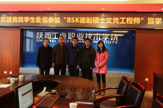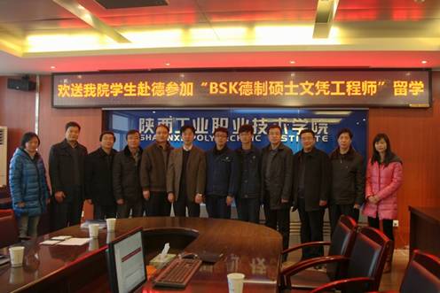 2月23日上午,学院在九楼会议室为数控工程学院季劼和机械工程学院刘金涛两名同学即将赴德攻读历时六年的硕士学位(并成为德制硕士学位工程师)举行欢送会。陕西工院副院长王津、教务处处长杨卫军及两位同学所在的数控学院及机械学院的领导出席了座谈会。座谈会由教务处长杨卫军主持。(2011年12月,我院与德国BSK国际教育机构签署了《中德教育交流与合作框架协议书》,协议于今年启动合作培养应用型德制工程师项目,此项目今年在全国选拔50名学生。)