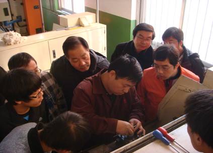 2011年12月15日上午,数维教研室在格物楼数控拆装实训室举行高级职称观摩课,观摩由祝战科高级工程师主讲,主题为“数控车床电动刀架拆装与维修”,数维教研室全体教师和数控学院其他部分教师参加了本次示范课听课及交流活动。