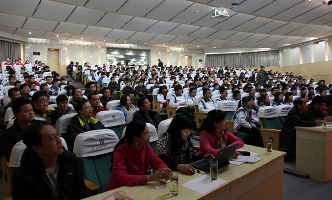 学院领导邓志辉、崔岩、王天哲与400余名师生现场观摩比赛 |