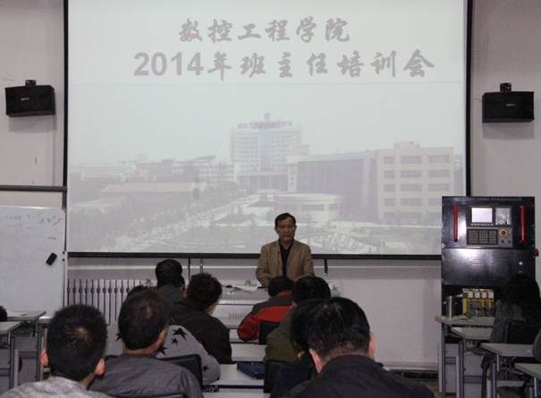 2014年11月2日晚,数控学院班主任培训会在行知楼E举行,数控学院全体辅导员、班主任、班主任助理及学生干部参加培训。会议邀请学院优秀班主任、优秀共产党员、处级调研员井明亮同志做了题为“倾注爱心,服务学生”的讲座。数控学院党总支书记南欢主持会议。