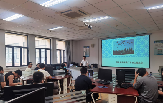 郭献育副部长首先邀请订单班同学一起观看了海德曼最新的发展情况视频,其中包括海德曼未来工厂视频、历届陕西工院学长的发展情况等视频。视频中以第一视角全面完整地介绍展示了海德曼智能工厂的全貌,让学生身临其境地了解了公司的各个部门及它们之间的联系,加深了职业岗位认知;同时,历届学长在海德曼的发展视频,也让同学们看到了优秀学长的风采,对将来的职业规划也有了更为清晰的想法。同时,郭献育副部长对订单班同学在顶岗实习离校前的在校表现提出了明确要求:在校期间,学习要一如既往的认真踏实,只有学好了专业知识和技能,夯实了理论与实践基础,才能更好地满足岗位要求,更快地适应工作状态。