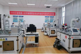 工业机器人应用编程“1+X”职业技能等级证书是落实国务院《国家职业教育改革实施方案》而进行的国家第二批“1+X”试点证书。我校工业机器人应用编程考核点目前为省级考核管理中心,有考核师6人,考核设备8台套,设备总值350余万元,可进行初级、中级及高级证书的认证考核,年均培训600人次。中心主要面向先进制造业发展和人才需求,与相关机构和行业企业紧密合作,共同开展培训及工业机器人应用编程“1+X”证书认证。